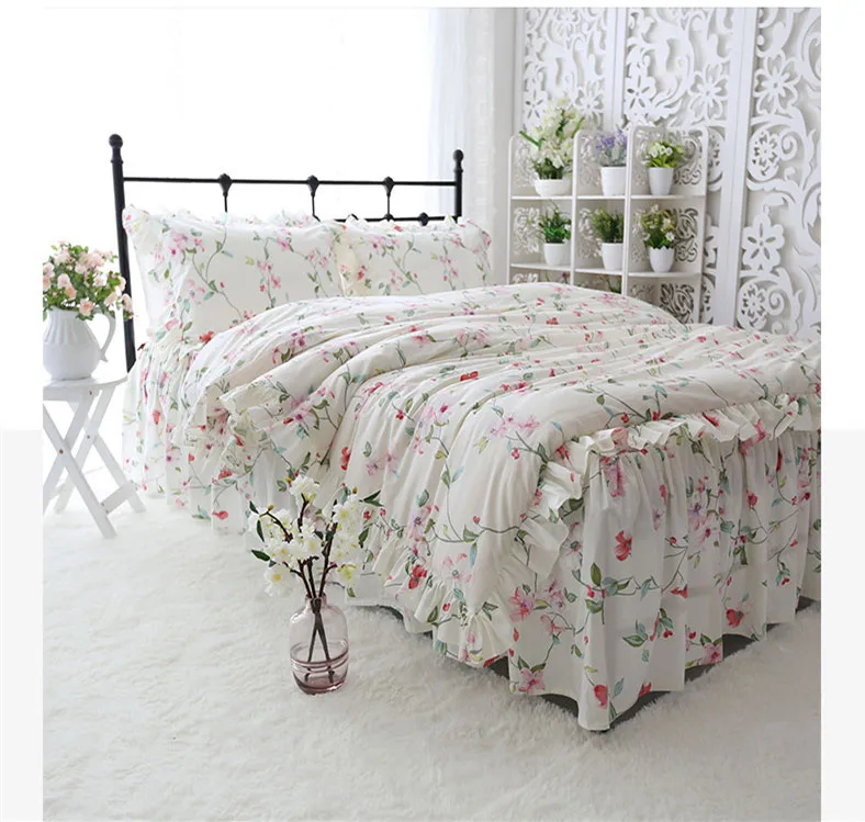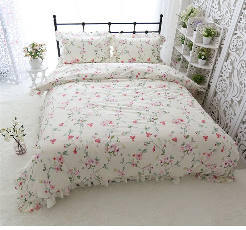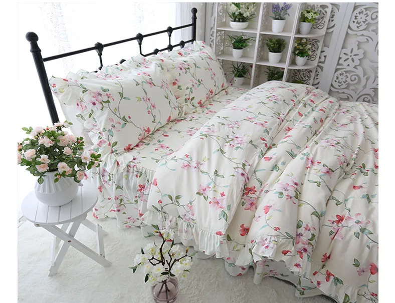 Home » best price , discount , home garden » Best Princess style bedding set garden print ruffle duvet cover set 100% cotton bed sheet set home texti